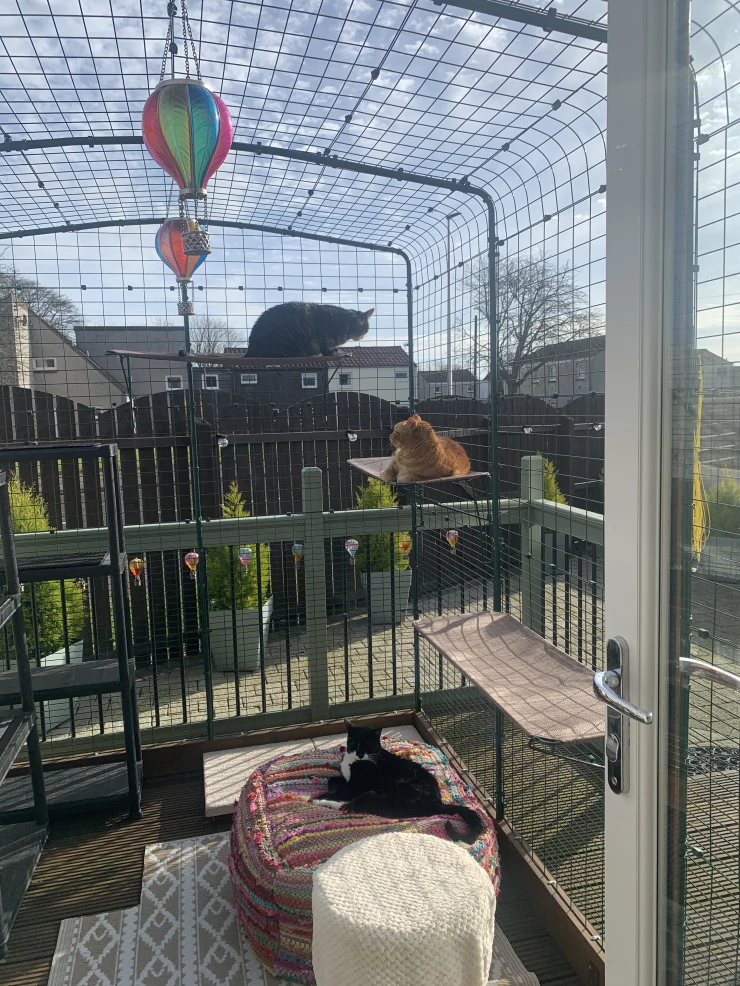Caption: Climbing fun in the new catio